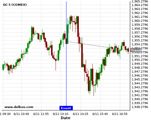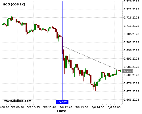 This probability is based on the last 12 US Non Farm Payrolls events, in which 5 of the last 7 events where the actual number was greater than than the economist consensus resulted in an down trend of GC.