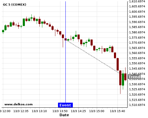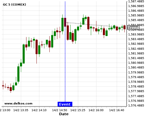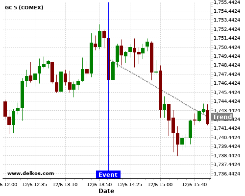 If the number is greater than than economists’ consensus there is a 71.42% probability that GC will trend down following the news event.