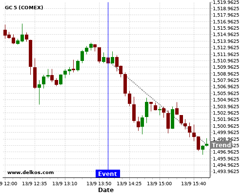 If the number is greater than than economists’ consensus there is a 71.42% probability that GC will trend down following the news event.