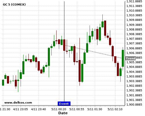 If the number is greater than than economists’ consensus there is a 71.42% probability that GC will trend down following the news event.