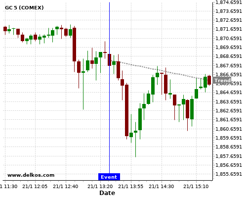 If the number is greater than than economists’ consensus there is a 71.42% probability that GC will trend down following the news event.