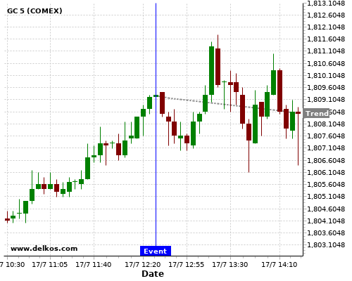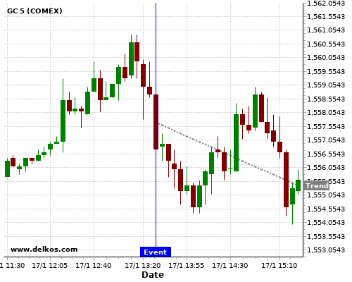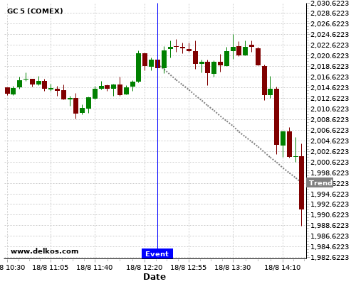 If the number is greater than than economists’ consensus there is a 71.42% probability that GC will trend down following the news event.