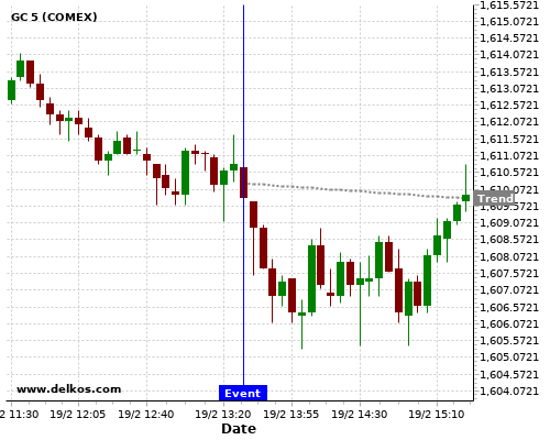 This probability is based on the last 12 US Housing Starts events, in which 5 of the last 7 events where the actual number was greater than than the economist consensus resulted in an down trend of GC.