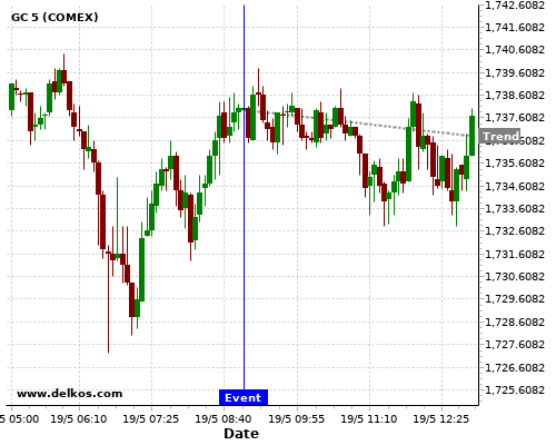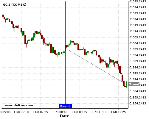 If the number is greater than than economists’ consensus there is a 71.42% probability that GC will trend down following the news event.