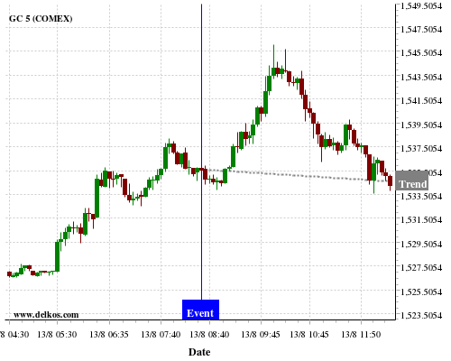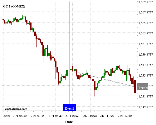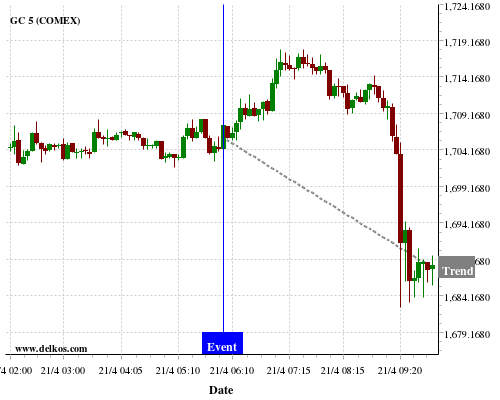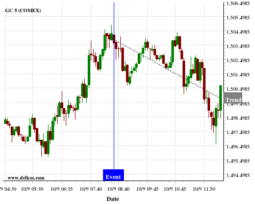 If the number is less than than economists’ consensus there is a 71.42% probability that GC will trend down following the news event.
