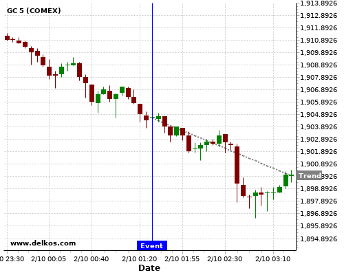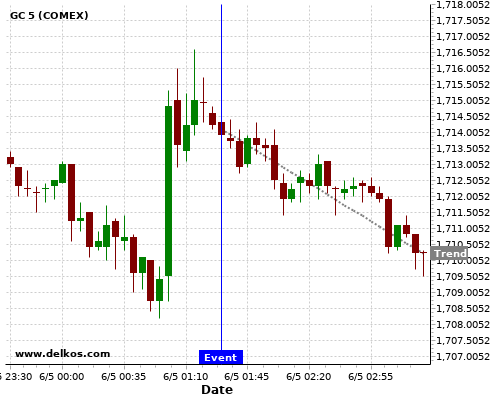 If the number is greater than than economists’ consensus there is a 71.42% probability that GC will trend down following the news event.