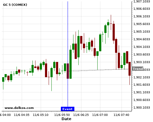 If the number is greater than than economists’ consensus there is a 71.42% probability that GC will trend up following the news event.