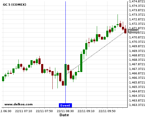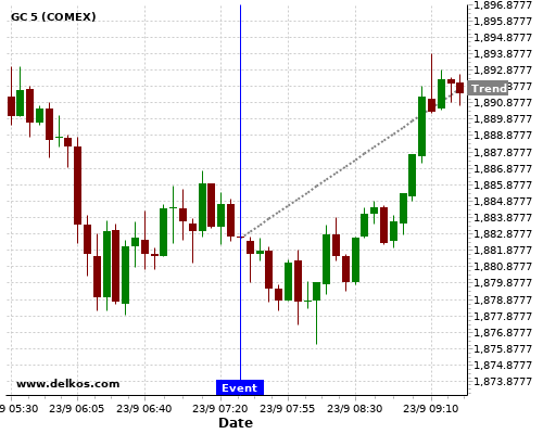 If the number is greater than than economists’ consensus there is a 71.42% probability that GC will trend up following the news event.