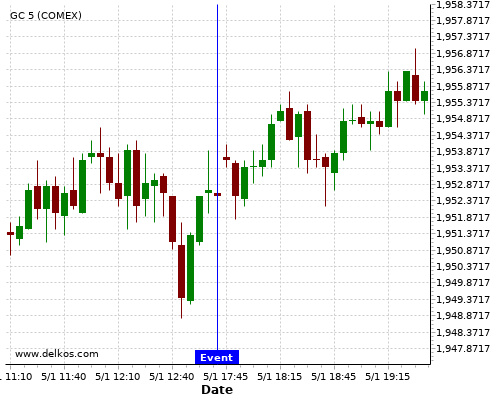 If the number is greater than than economists’ consensus there is a 71.42% probability that GC will trend up following the news event.