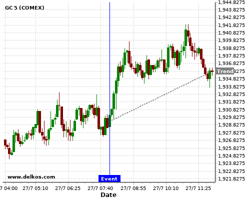 If the number is greater than than economists’ consensus there is a 71.42% probability that GC will trend up following the news event.