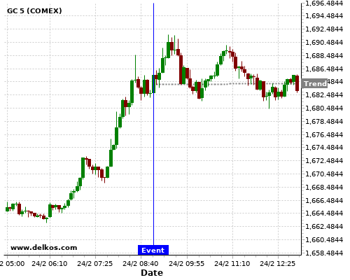 If the number is greater than than economists’ consensus there is a 71.42% probability that GC will trend up following the news event.