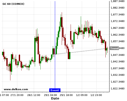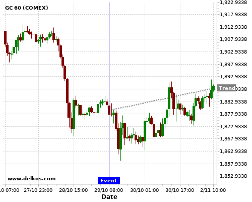 If the number is less than than economists’ consensus there is a 71.42% probability that GC will trend up following the news event.