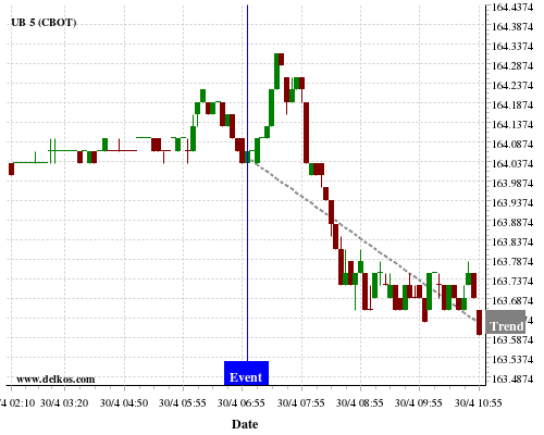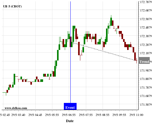 If the number is less than than economists’ consensus there is a 71.42% probability that UB will trend down following the news event.