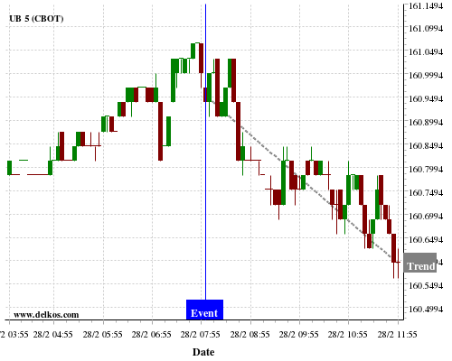If the number is less than than economists’ consensus there is a 71.42% probability that UB will trend down following the news event.