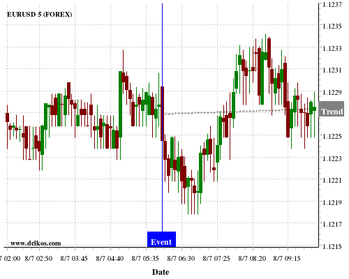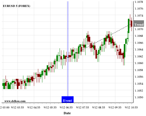 Эта вероятность основывается на последних 12 новостных событиях DE Balance of Trade, во время которых в 8 из 11 случаев, когда фактическое значение показателя было Выше чем консенсус экономистов – будет расти EURUSD.