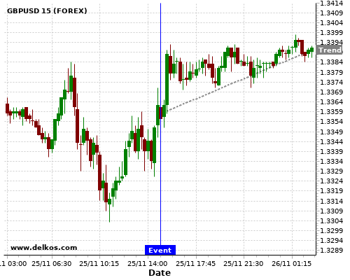 Если показатель Выше чем консенсус экономистов существует 72.72% вероятность того, что GBPUSD будет расти после новостного события.
