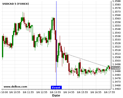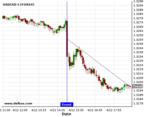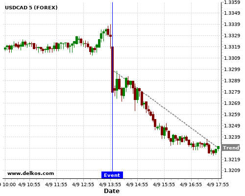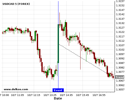 Если показатель равно консенсус экономистов существует 72.72% вероятность того, что USDCAD будет падать после новостного события.