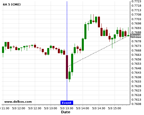If the number is less than than economists’ consensus there is a 72.72% probability that 6A will trend up following the news event.