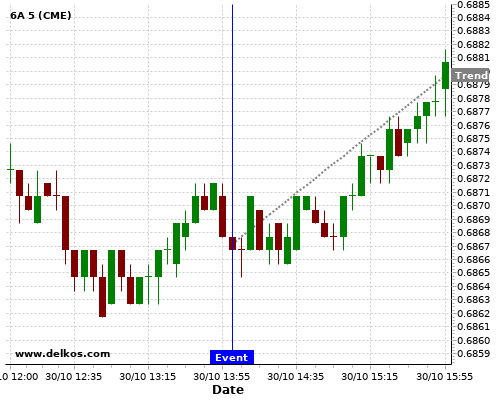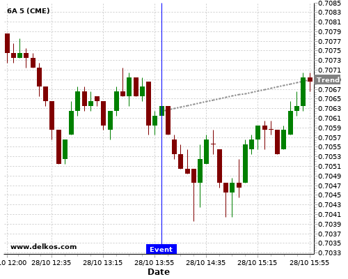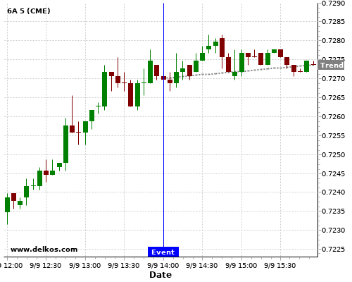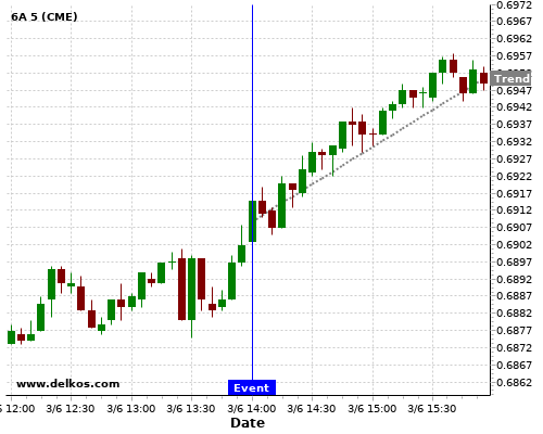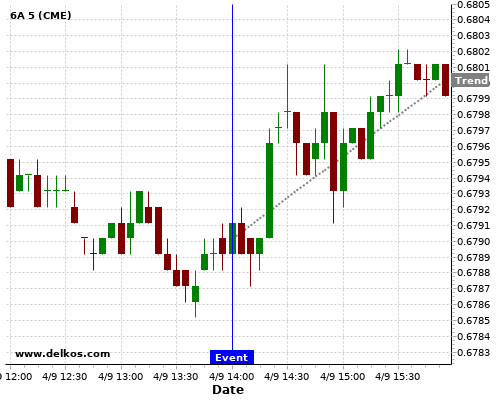 If the number is equal to than economists’ consensus there is a 72.72% probability that 6A will trend up following the news event.