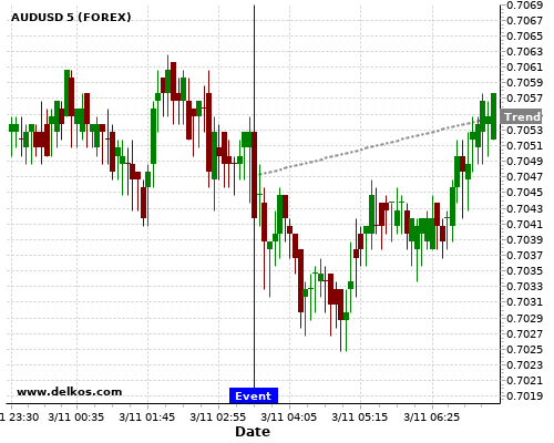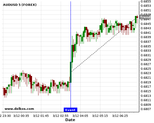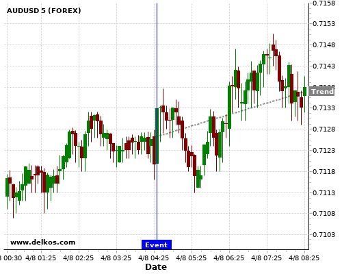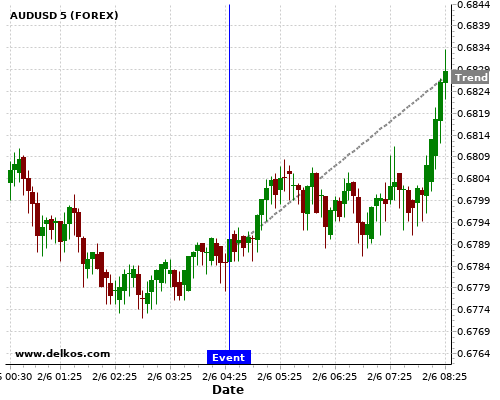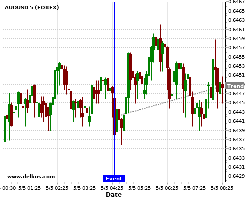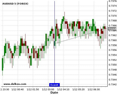 If the number is equal to than economists’ consensus there is a 72.72% probability that AUDUSD will trend up following the news event.