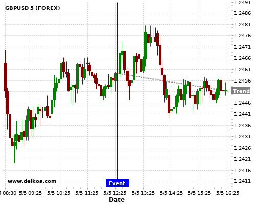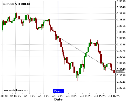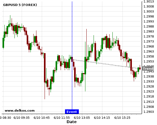 This probability is based on the last 12 US Balance of Trade events, in which 8 of the last 11 events where the actual number was less than than the economist consensus resulted in an down trend of GBPUSD.