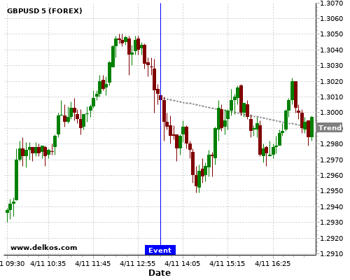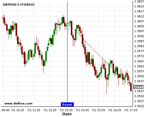 If the number is less than than economists’ consensus there is a 72.72% probability that GBPUSD will trend down following the news event.