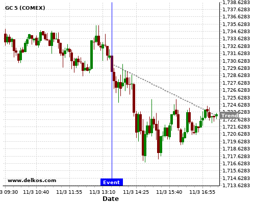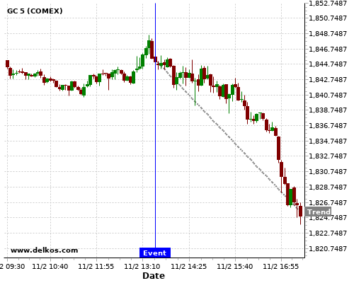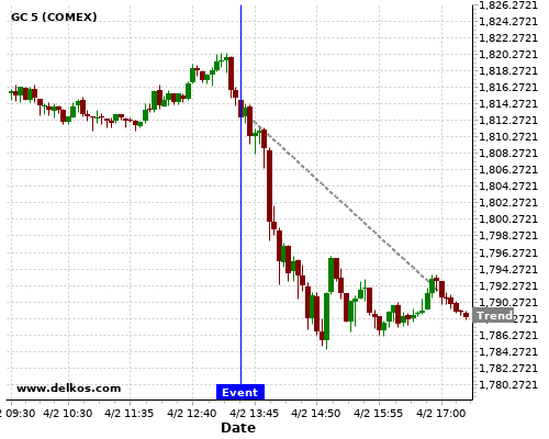If the number is less than than economists’ consensus there is a 72.72% probability that GC will trend down following the news event.