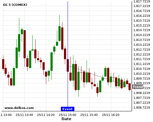 If the number is greater than than economists’ consensus there is a 72.72% probability that GC will trend down following the news event.