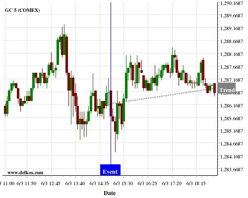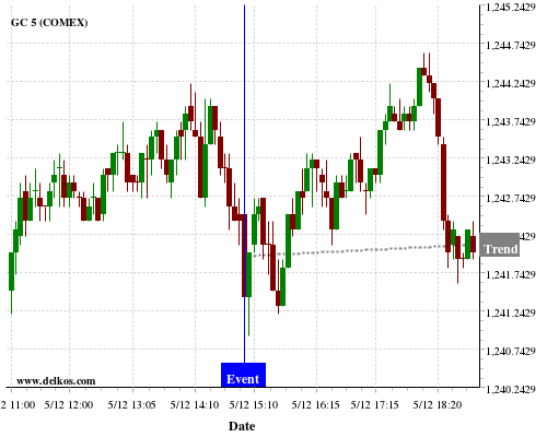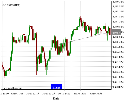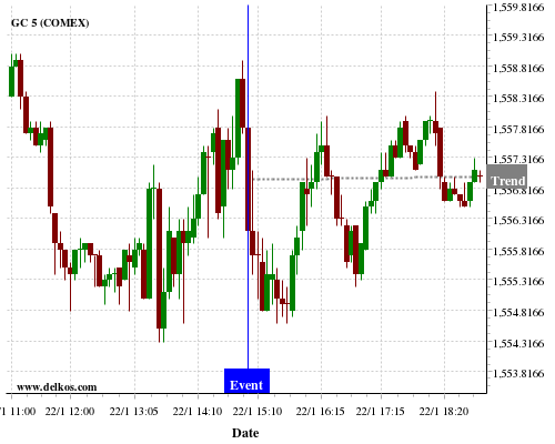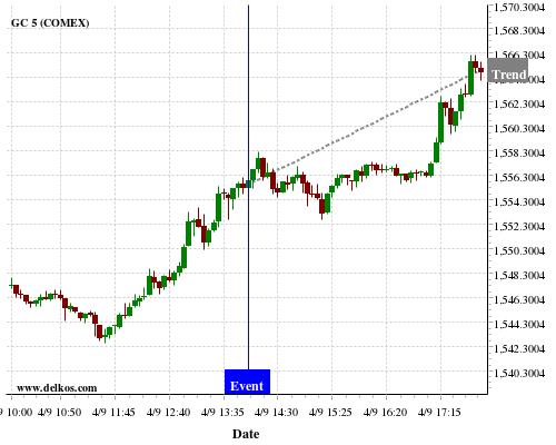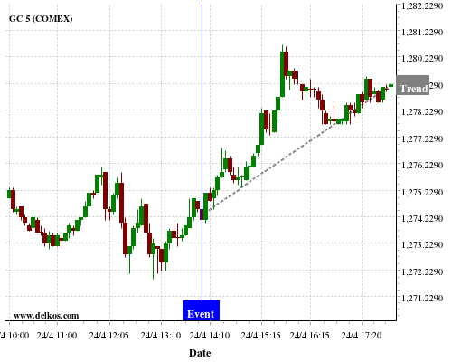If the number is equal to than economists’ consensus there is a 72.72% probability that GC will trend up following the news event.