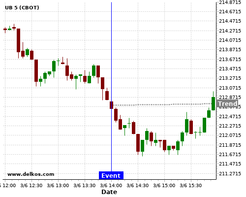 This probability is based on the last 12 CA BoC Interest Rate Decision events, in which 8 of the last 11 events where the actual number was equal to than the economist consensus resulted in an up trend of UB.