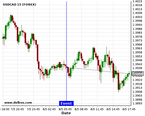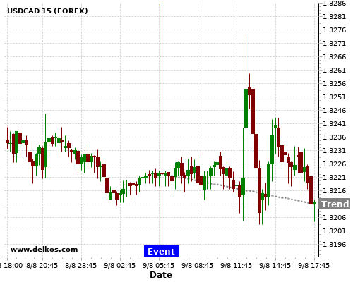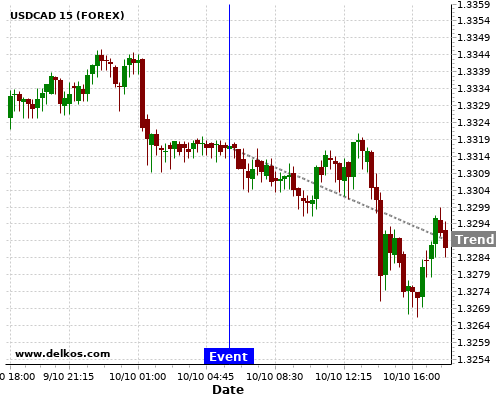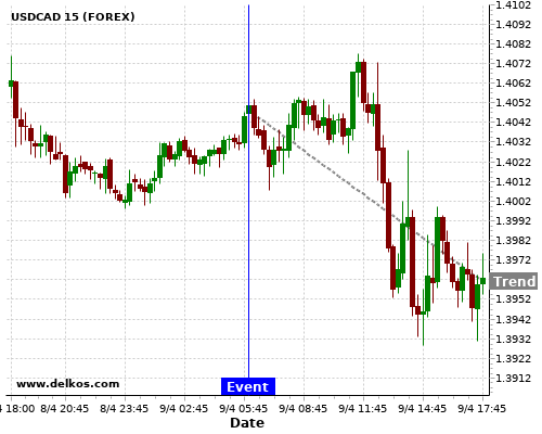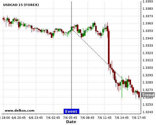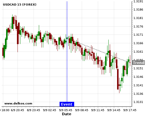 If the number is greater than than economists’ consensus there is a 72.72% probability that USDCAD will trend down following the news event.