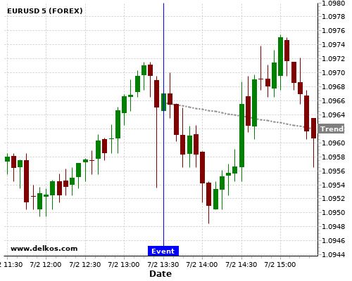 Эта вероятность основывается на последних 12 новостных событиях CA Employment Change, во время которых в 5 из 8 случаев, когда фактическое значение показателя было Выше чем консенсус экономистов – будет падать EURUSD.