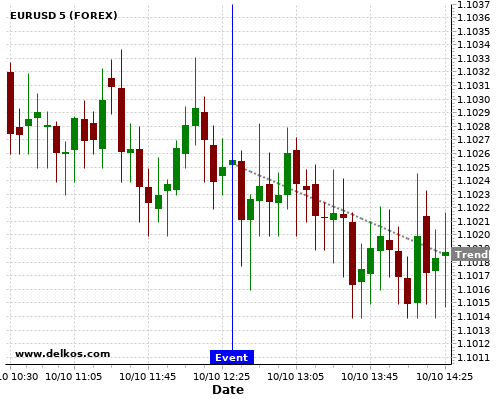 Если показатель меньше чем консенсус экономистов существует 75% вероятность того, что EURUSD будет падать после новостного события.