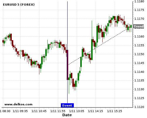 Если показатель Выше чем консенсус экономистов существует 75% вероятность того, что EURUSD будет расти после новостного события.