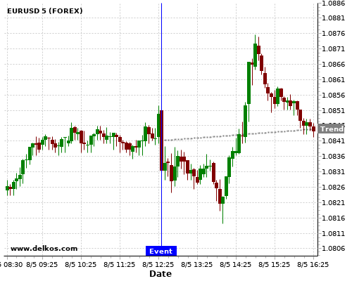 Эта вероятность основывается на последних 12 новостных событиях US Non Farm Payrolls, во время которых в 2 из 8 случаев, когда фактическое значение показателя было Выше чем консенсус экономистов – будет расти EURUSD.