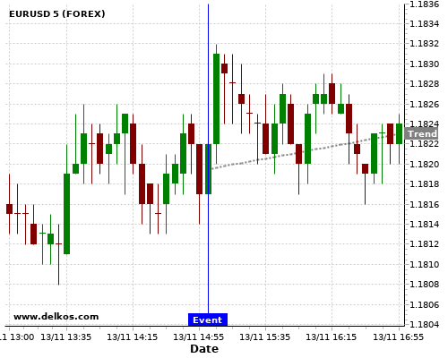 Если показатель меньше чем консенсус экономистов существует 75% вероятность того, что EURUSD будет расти после новостного события.