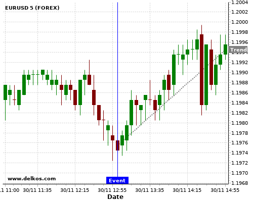 Если показатель меньше чем консенсус экономистов существует 75% вероятность того, что EURUSD будет расти после новостного события.