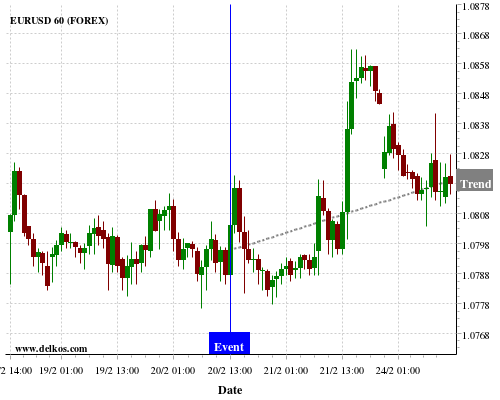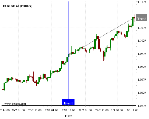 Если показатель Выше чем консенсус экономистов существует 75% вероятность того, что EURUSD будет расти после новостного события.