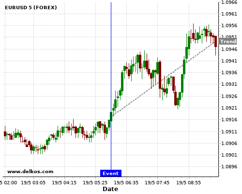 Если показатель Выше чем консенсус экономистов существует 75% вероятность того, что EURUSD будет расти после новостного события.