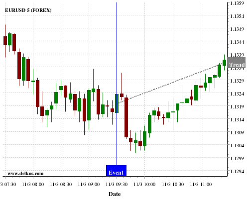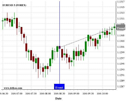 Если показатель Выше чем консенсус экономистов существует 75% вероятность того, что EURUSD будет расти после новостного события.