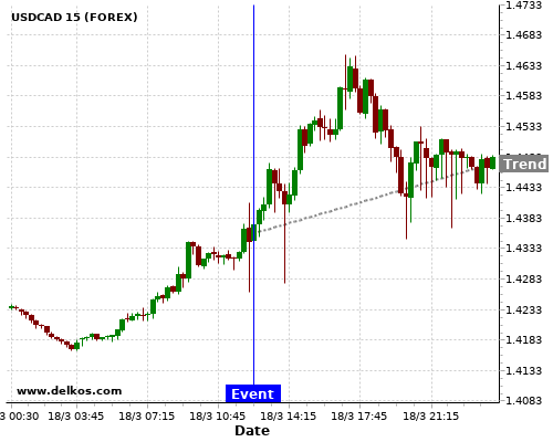 Если показатель Выше чем консенсус экономистов существует 75% вероятность того, что USDCAD будет расти после новостного события.