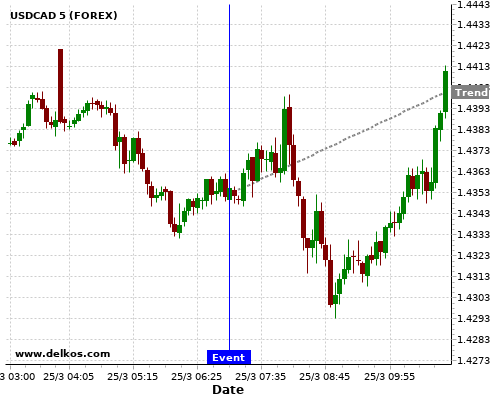 Если показатель равно консенсус экономистов существует 75% вероятность того, что USDCAD будет расти после новостного события.