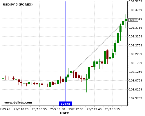 Если показатель равно консенсус экономистов существует 75% вероятность того, что USDJPY будет расти после новостного события.