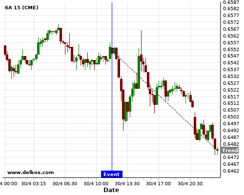 If the number is equal to than economists’ consensus there is a 75% probability that 6A will trend down following the news event.