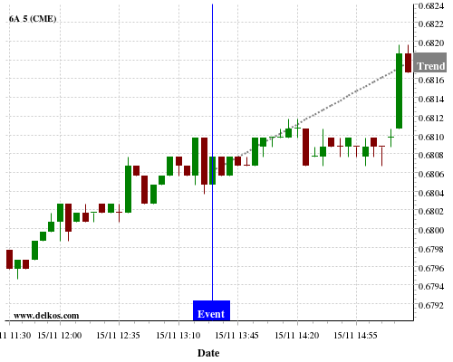If the number is greater than than economists’ consensus there is a 75% probability that 6A will trend up following the news event.