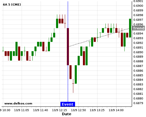 If the number is greater than than economists’ consensus there is a 75% probability that 6A will trend up following the news event.