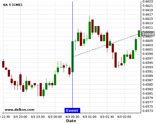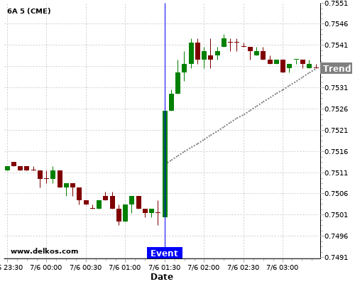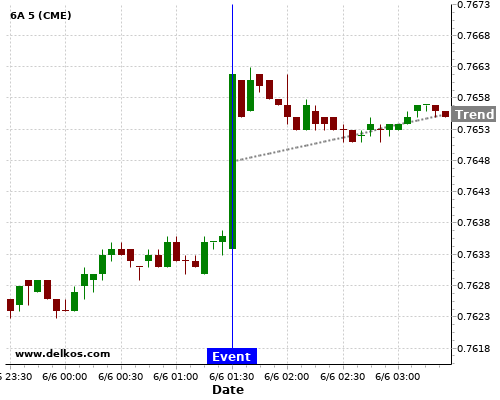 If the number is greater than than economists’ consensus there is a 75% probability that 6A will trend up following the news event.