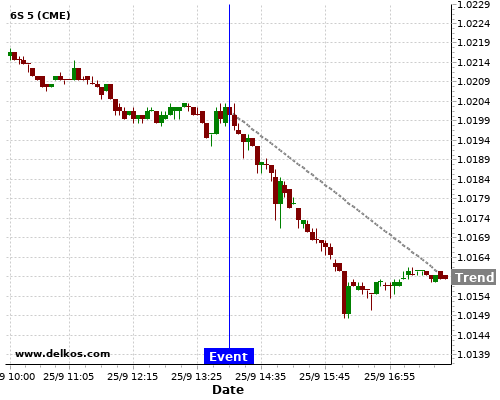 If the number is greater than than economists’ consensus there is a 75% probability that 6S will trend down following the news event.