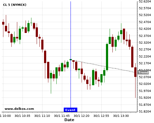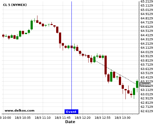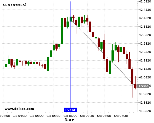 If the number is equal to than economists’ consensus there is a 75% probability that CL will trend down following the news event.