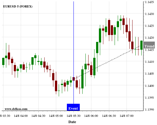 If the number is less than than economists’ consensus there is a 75% probability that EURUSD will trend up following the news event.
